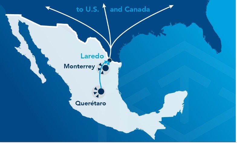 It uniquely combines freight consolidation in Mexico, cross-border transport, customs brokerage and bonded warehousing with the largest network of carriers and AI-optimized delivery across the United States and Canada.
