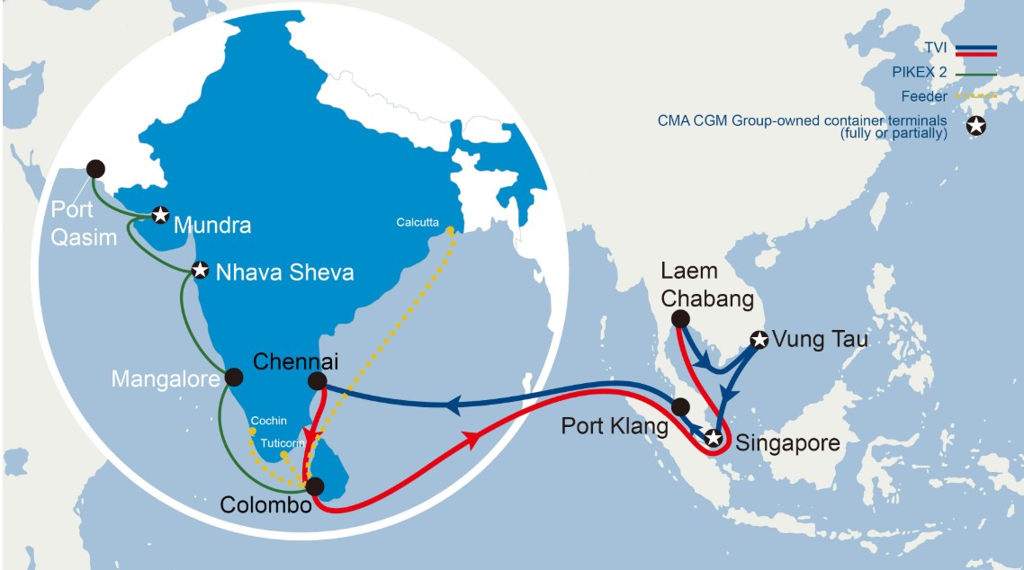 Shipping giant CMA CGM on 2 December 2025 announced that India East Coast Express 2 (IEX2) service has been fully revamped and relaunched as the Thailand Vietnam India (TVI) service, enhancing its network with expanded coverage from Thailand, Vietnam, and Malaysia to South East India and Sri Lanka.