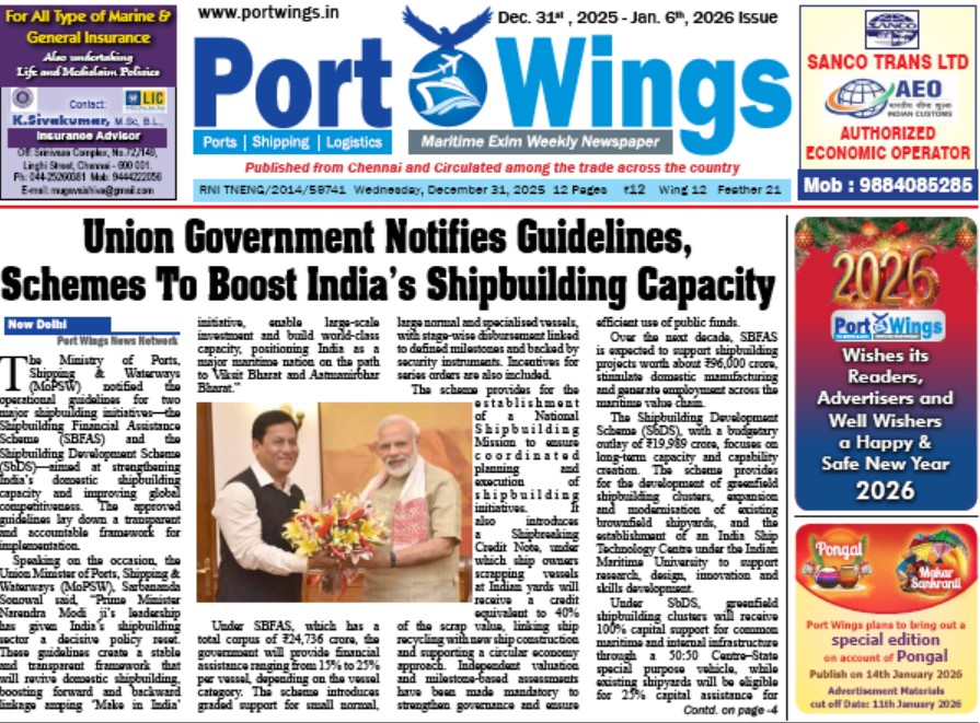 Epaper Port Wings Maritime New Year Spl Vol-II ePaper December 30, 2025 0 About The Author Admin See author's posts Post navigation Previous: CMA CGM Launches KEA Service Connecting US East Coast With OceaniaNext: Lav Aggarwal Appointed as DGFT Chief More Stories Epaper Port Wings Maritime 21 Jan 2026 ePaper January 21, 2026 0 Epaper Port Wings Maritime 14 Jan 2026 ePaper January 13, 2026 0 Epaper Port Wings Maritime 7 Jan 2026 ePaper January 7, 2026 0 Leave a Reply Cancel replyYour email address will not be published. Required fields are marked *Comment * Name * Email * Website Save my name, email, and website in this browser for the next time I comment.