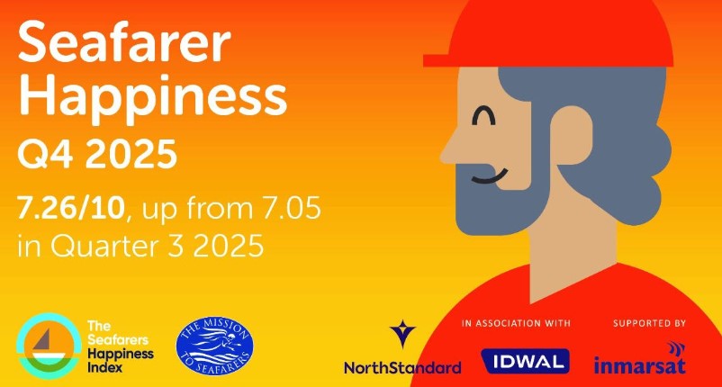The latest Seafarers Happiness Index (SHI) from The Mission to Seafarers shows a modest improvement in wellbeing at the end of a volatile year, with the overall happiness score rising to 7.26 out of 10 in Q4 2025, up from 7.05 in the previous quarter.